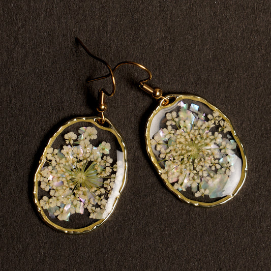 Abalone Shell & Queen Annes Lace Earrings