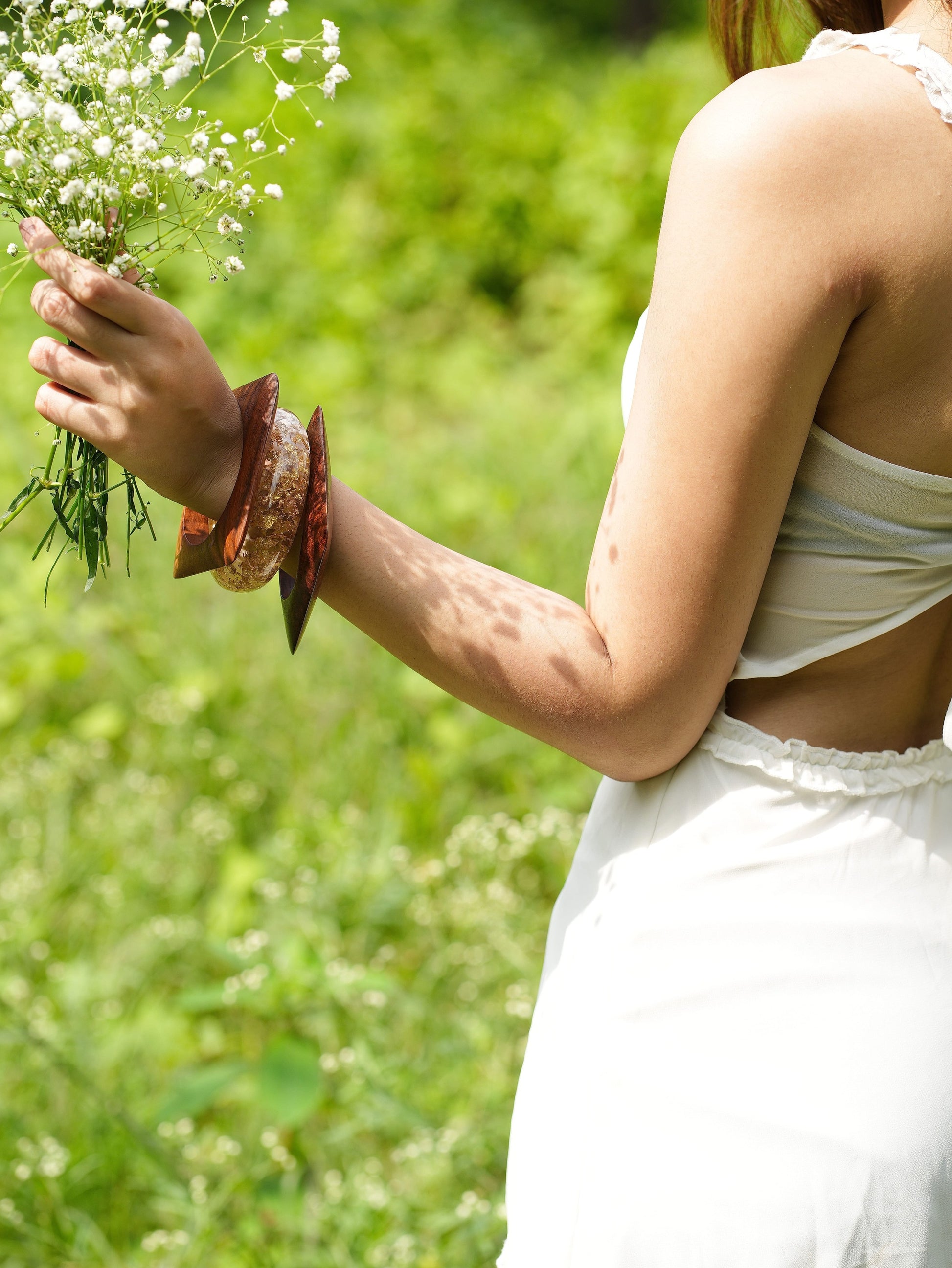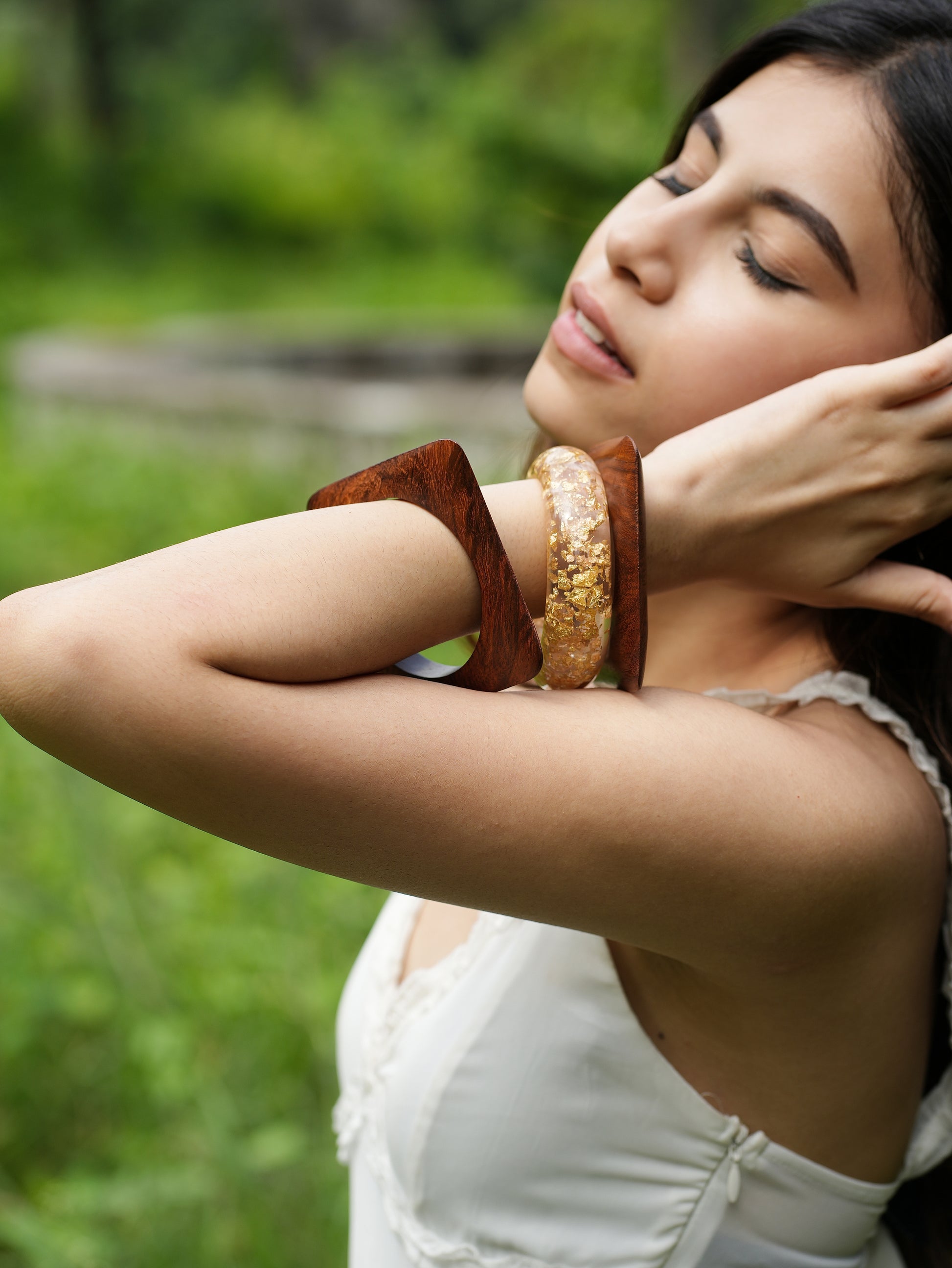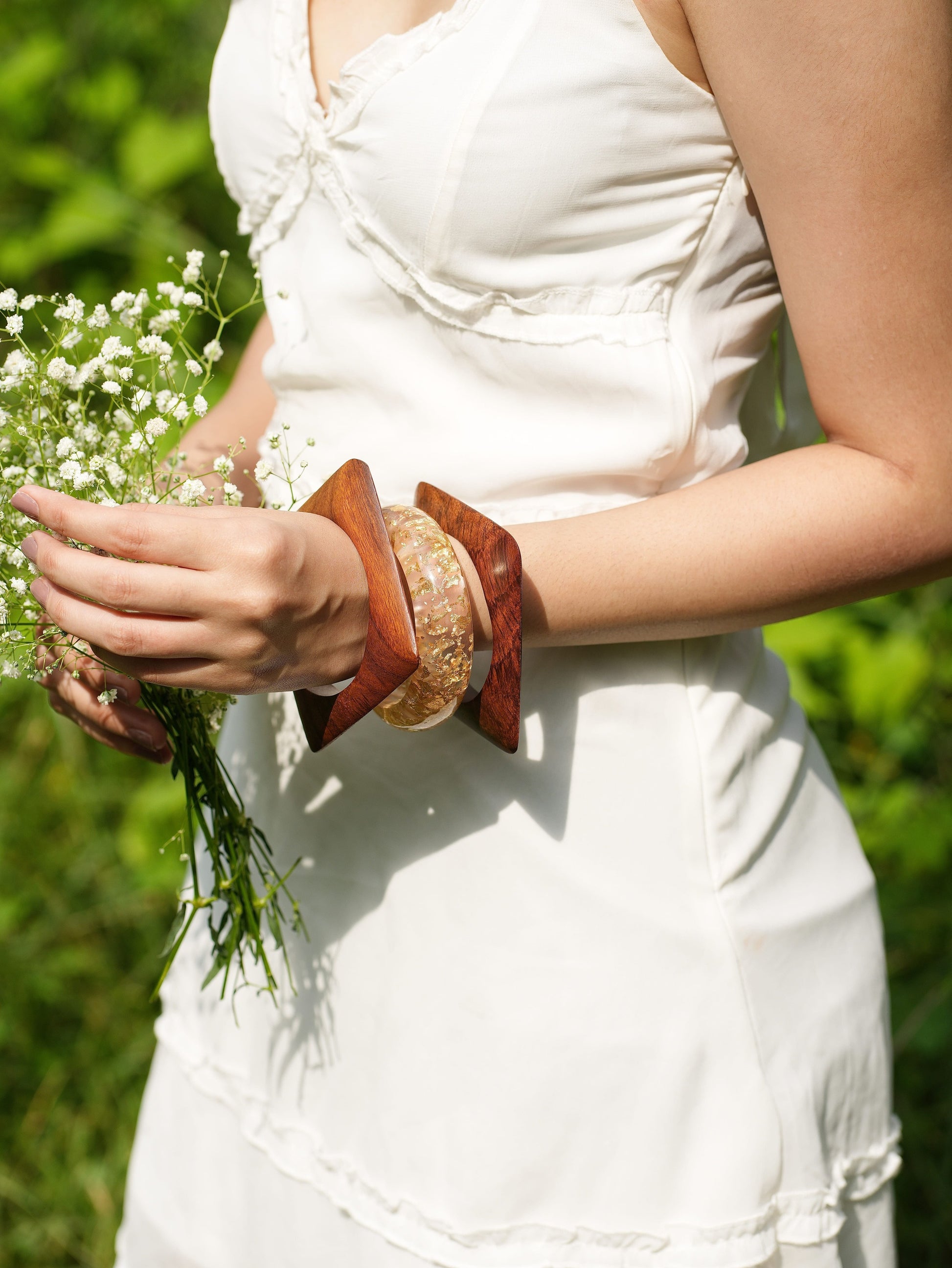 - Natural wooden bangles — for grounding & earthy elegance