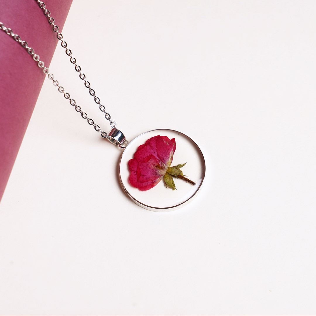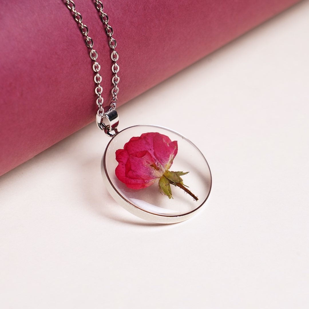 Real preserved flowers in jewelry make a memorable, elegant gift.