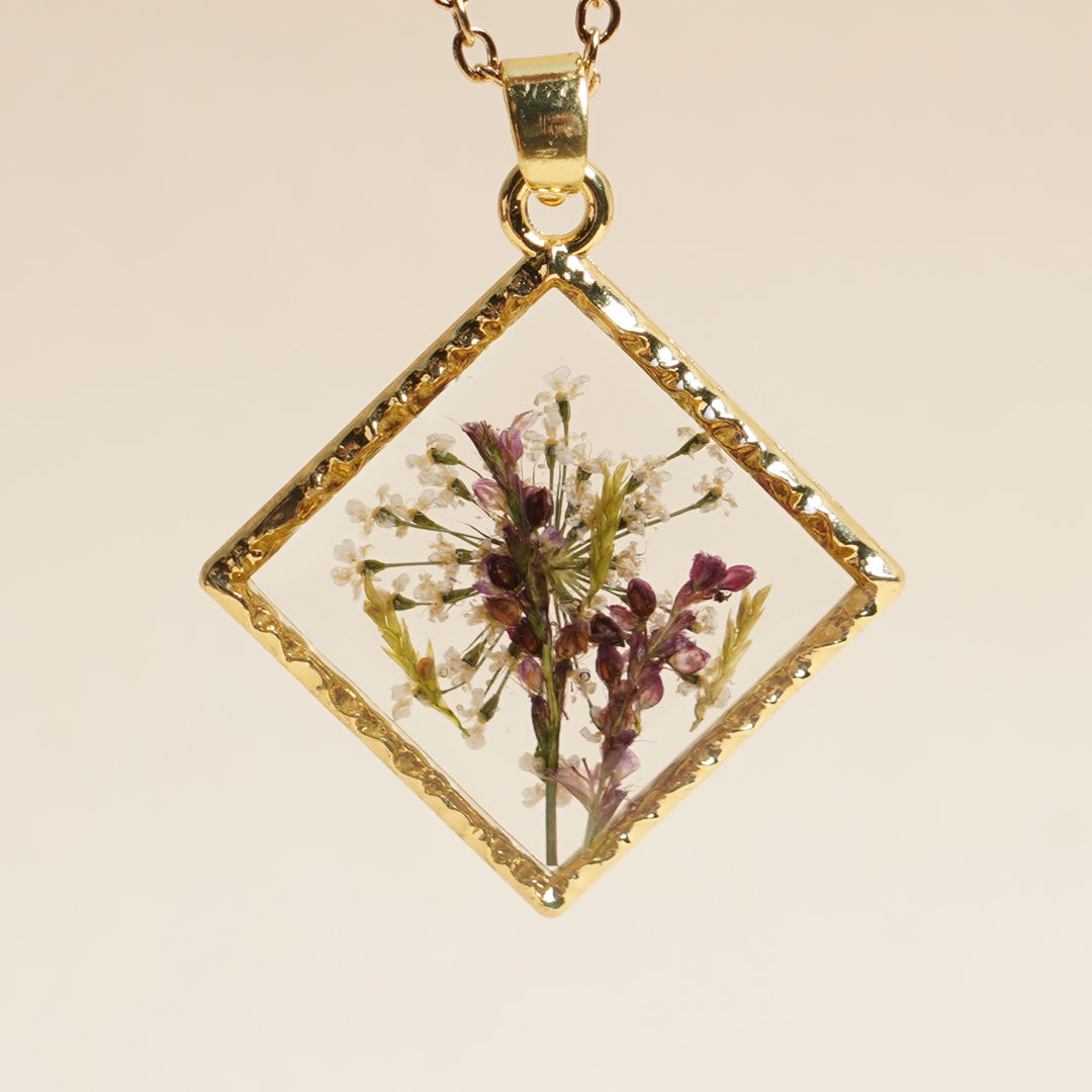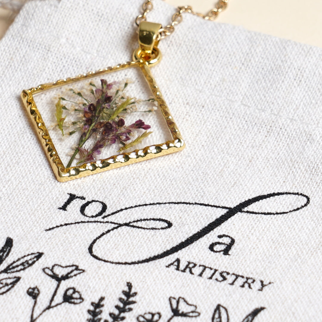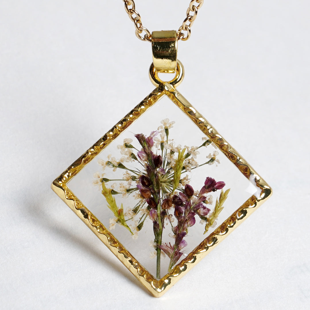 Real preserved flowers in jewelry make a memorable, elegant gift.